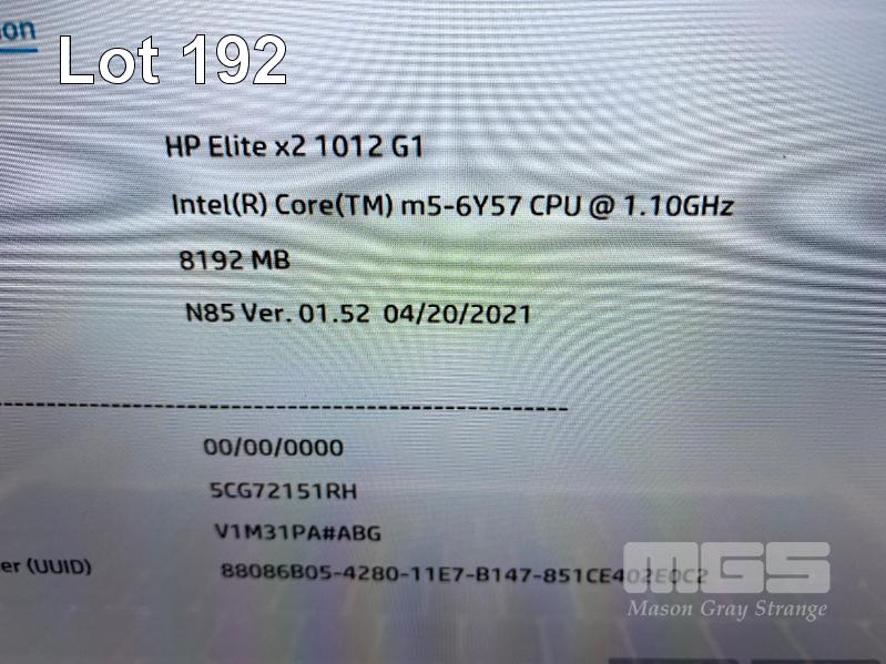TABLET PC, HP ELITE x2 1012 G1 (V1M31PA), CORE m5-6Y57 @ 1.1GHz, 8GB RAM, 256GB SSD, 12" TOUCHSCREEN (1920x1080), INTEL HD VIDEO, Wi-Fi, CELLULAR, WINDOWS 10 PRO INSTALLED, KEYBOARD & USB-C POWER SUPPLY S/N:5CG72151RH