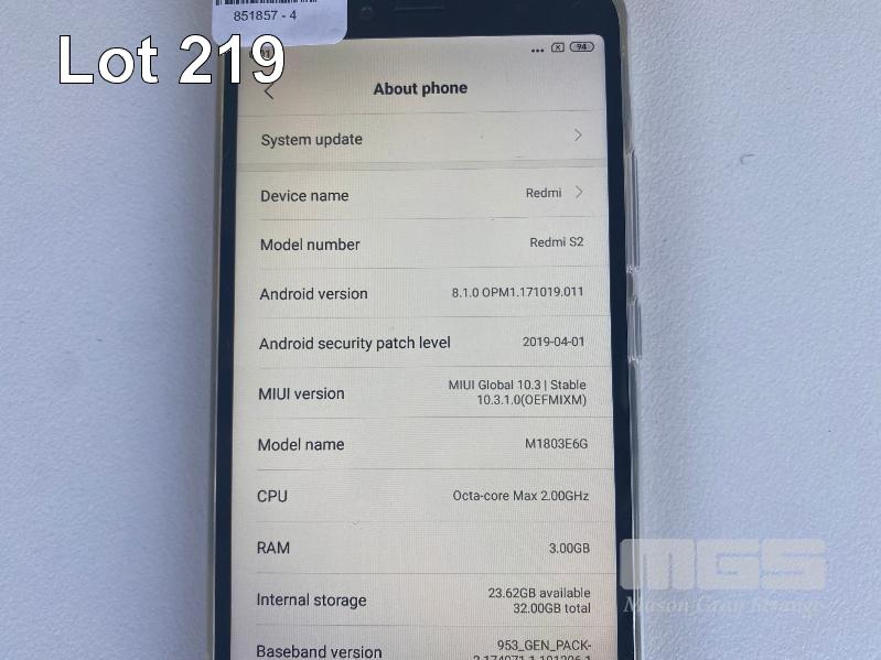 XIAOMI REDMI S2 SMARTPHONE, 32GB, DUAL SIM, MODEL M1803E6G (GREY) (NO CABLE, NO CHARGER) S/N:3190D077
