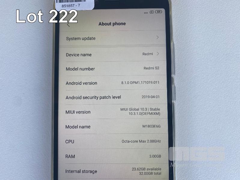 XIAOMI REDMI S2 SMARTPHONE, 32GB, DUAL SIM, MODEL M1803E6G (GREY) (NO CABLE, NO CHARGER) S/N:30936C9A