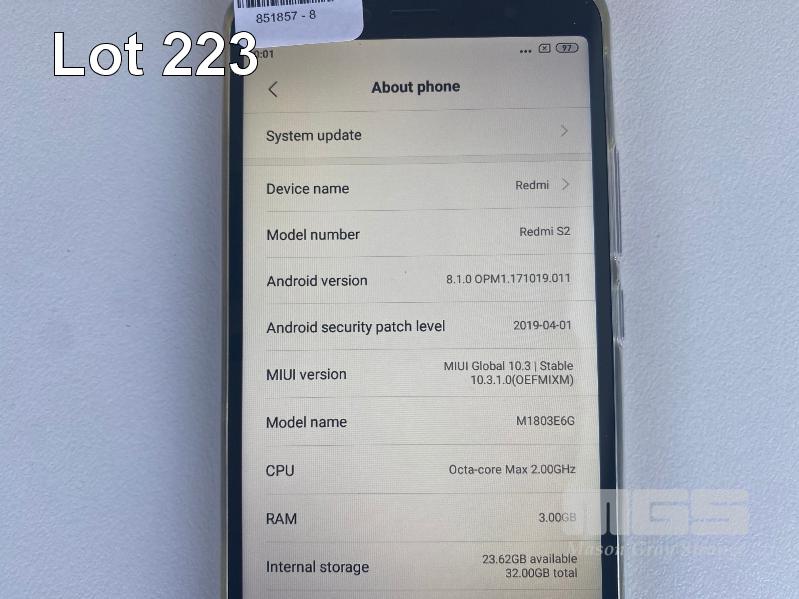 XIAOMI REDMI S2 SMARTPHONE, 32GB, DUAL SIM, MODEL M1803E6G (GREY) (NO CABLE, NO CHARGER) S/N:31A33C41