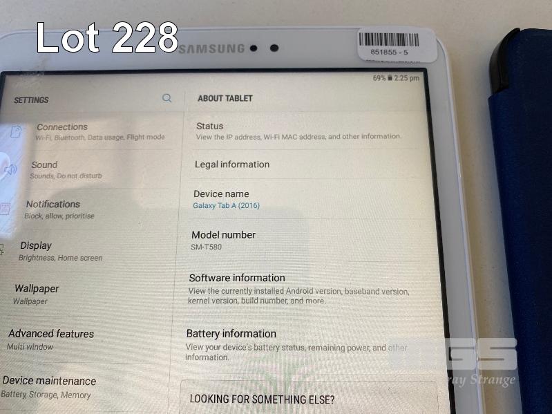 TABLET PC, SAMSUNG GALAXY TAB A6, MODEL SM-T580, 16GB, Wi-Fi, 10.1" SCREEN, WITH CASE (NO CABLE, NO CHARGER) S/N:R52JB0QG1MV