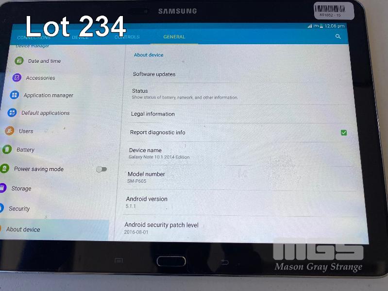 TABLET PC, SAMSUNG GALAXY NOTE 10.1, MODEL SM-P605, 16GB, Wi-Fi, 4G, 10.1" SCREEN, WITH KEYBOARD & CASE (NO CABLE, NO CHARGER)