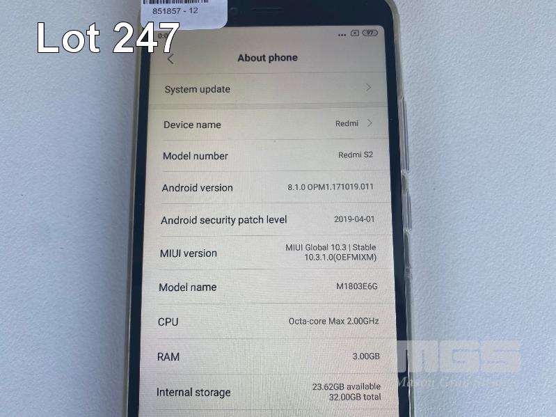 XIAOMI REDMI S2 SMARTPHONE, 32GB, DUAL SIM, MODEL M1803E6G (GREY) (NO CABLE, NO CHARGER) S/N:B21F0790