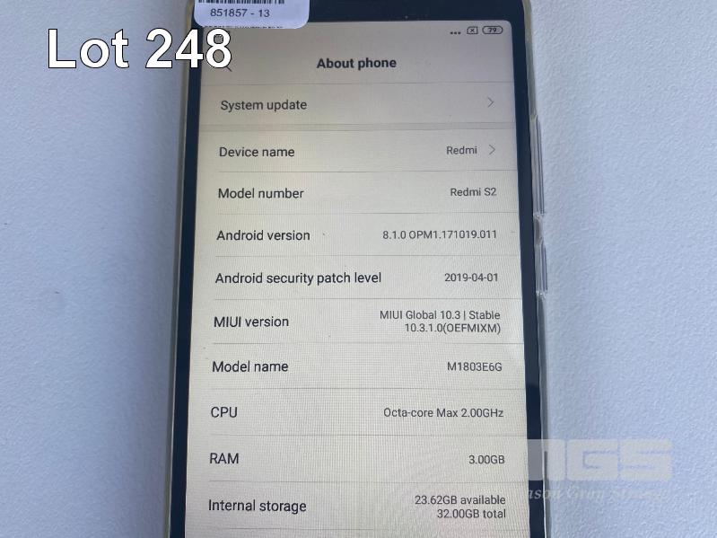 XIAOMI REDMI S2 SMARTPHONE, 32GB, DUAL SIM, MODEL M1803E6G (GREY) (NO CABLE, NO CHARGER) S/N:306B693A