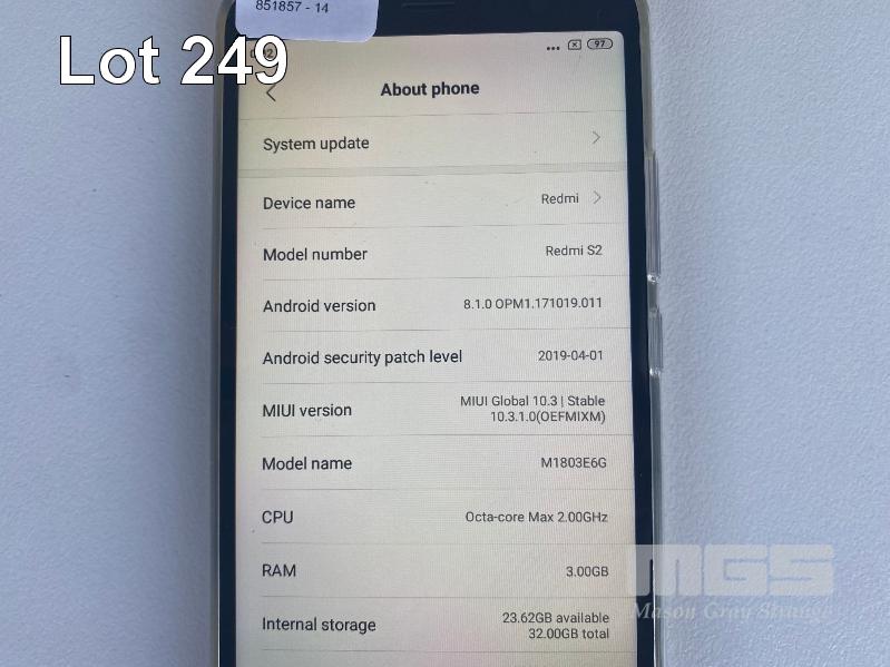 XIAOMI REDMI S2 SMARTPHONE, 32GB, DUAL SIM, MODEL M1803E6G (GREY) (NO CABLE, NO CHARGER) S/N:30740CA7