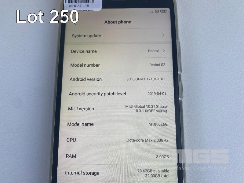XIAOMI REDMI S2 SMARTPHONE, 32GB, DUAL SIM, MODEL M1803E6G (GREY) (NO CABLE, NO CHARGER) S/N:28D8141F
