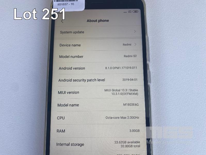 XIAOMI REDMI S2 SMARTPHONE, 32GB, DUAL SIM, MODEL M1803E6G (GREY) (NO CABLE, NO CHARGER) S/N:482A85A