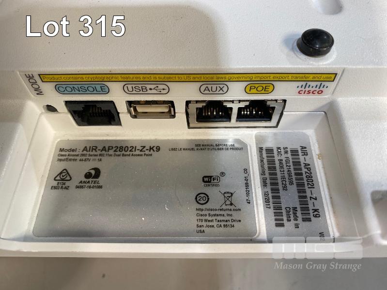 4 x CISCO AIRONET 2800 SERIES WIRELESS ACCESS POINTS, AIR-AP2802I-Z-K9 V02 WITH BRACKETS (POWER SUPPLIES NOT INCLUDED)