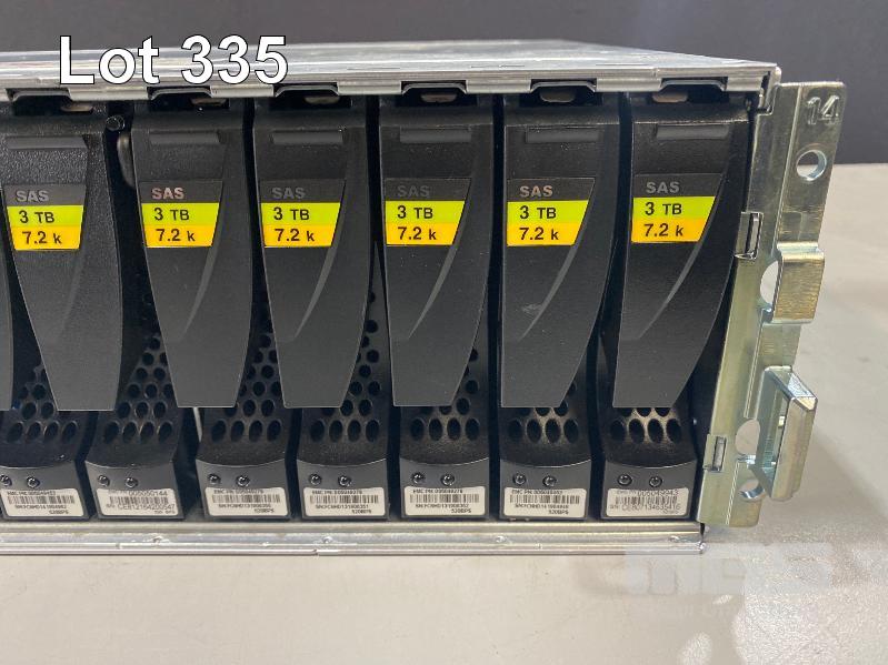 RACKMOUNT STORAGE ARRAY, DELL EMC2, MODEL KTN-STL3, 15 x 3TB SAS HDD, 2 x SAS CONTROLLERS (303-108-000E), 2 x PSU (NO CABLES)