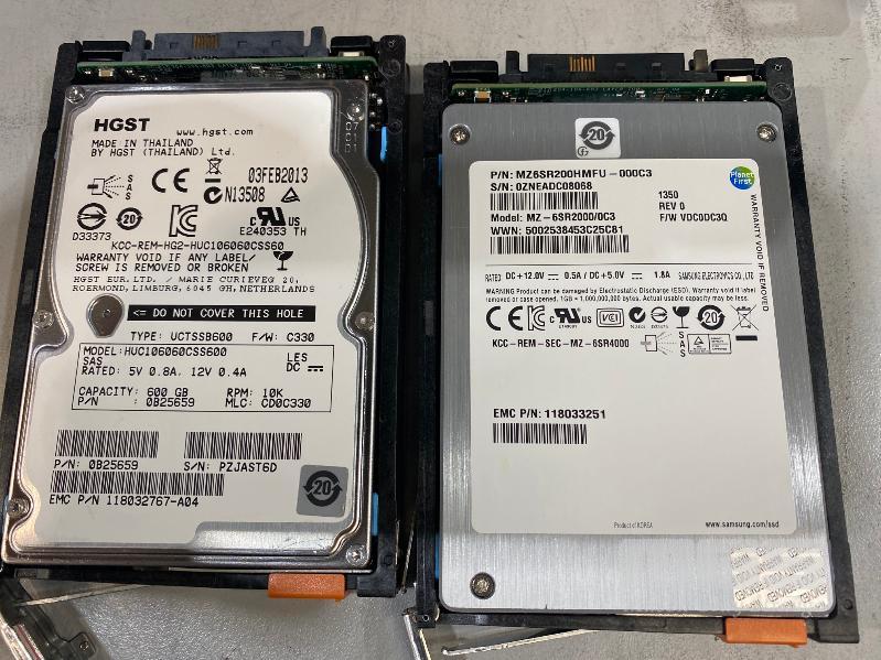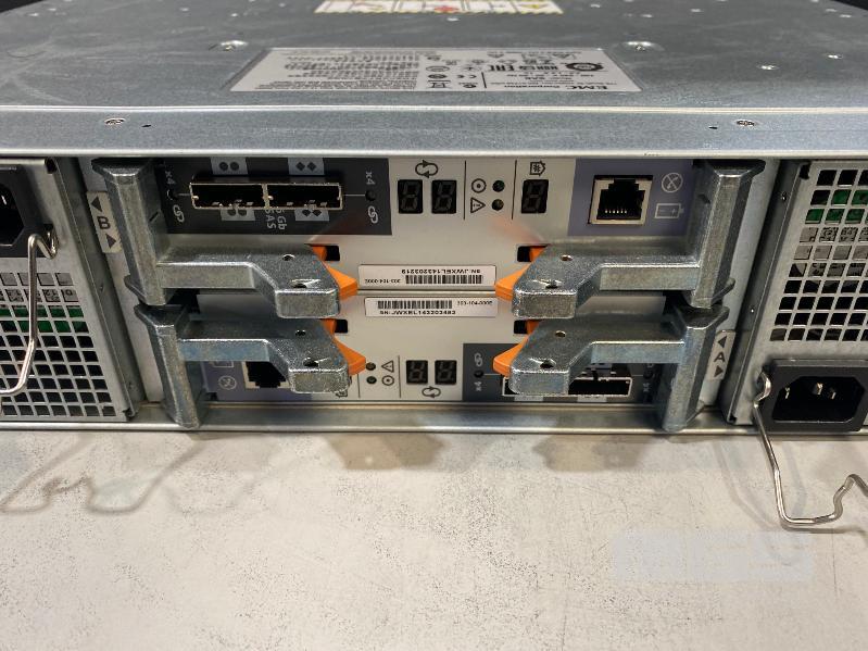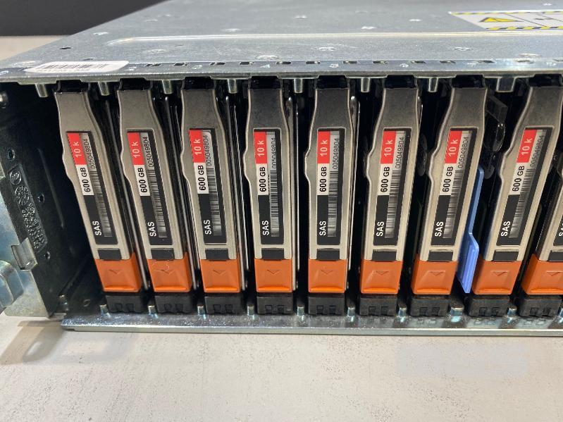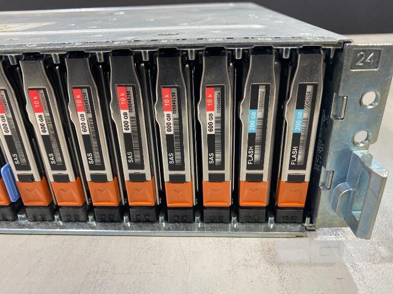 RACKMOUNT STORAGE ARRAY, EMC, MODEL SAE (100-562-712), 2U, 2 x 200GB FLASH DRIVES, 22 x 600GB SAS HDD, 2 x 6GB SAS LCC CONTROLLER CARDS (303-104-000E), 2 x PSU (NO CABLES)