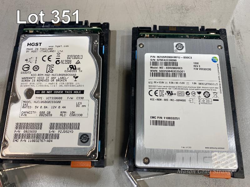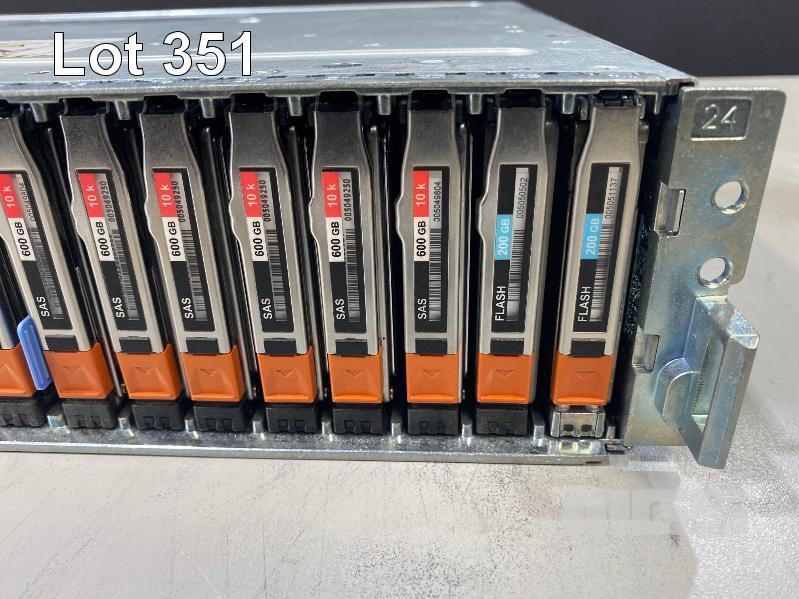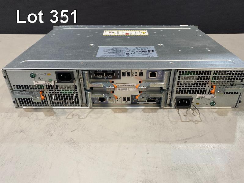 RACKMOUNT STORAGE ARRAY, EMC, MODEL SAE (100-562-712), 2U, 2 x 200GB FLASH DRIVES, 22 x 600GB SAS HDD, 2 x 6GB SAS LCC CONTROLLER CARDS (303-104-000E), 2 x PSU (NO CABLES)