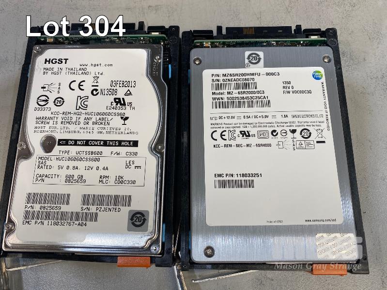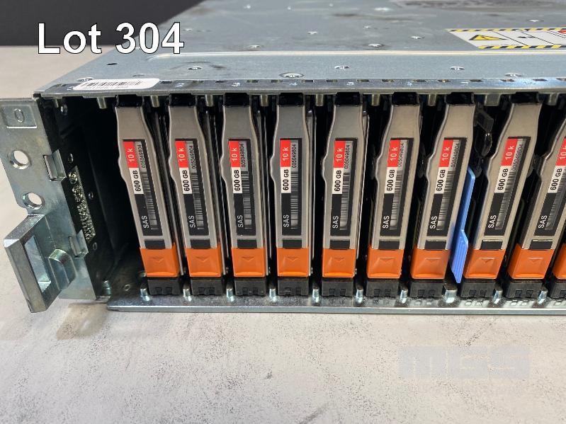 RACKMOUNT STORAGE ARRAY, EMC, MODEL SAE (100-562-712), 2U, 2 x 200GB FLASH DRIVES, 22 x 600GB SAS HDD, 2 x 6GB SAS LCC CONTROLLER CARDS (303-104-000E), 2 x PSU (NO CABLES)