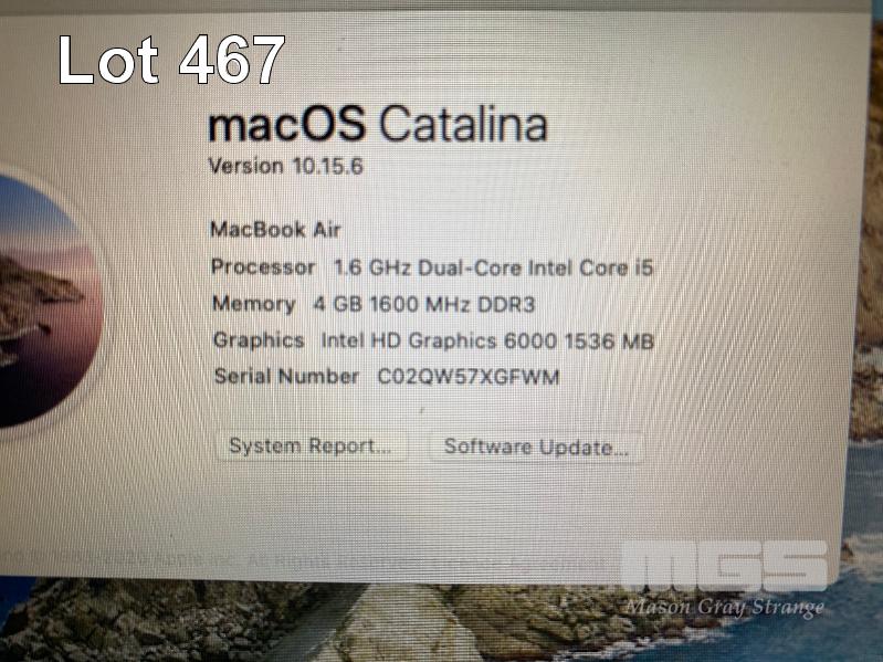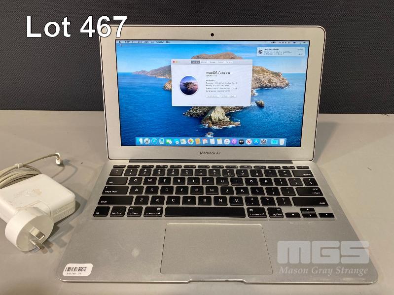 LAPTOP, APPLE MACBOOK AIR (A1465), CORE i5 5250U (5TH GEN) @ 1.6GHz, 4GB DDR3 RAM, 128GB SSD, 11.6" WIDESCREEN (1366x768), INTEL HD VIDEO, Wi-Fi, MAC OS 10.15 INSTALLED & POWER SUPPLY S/N:C02QW57XGFWM