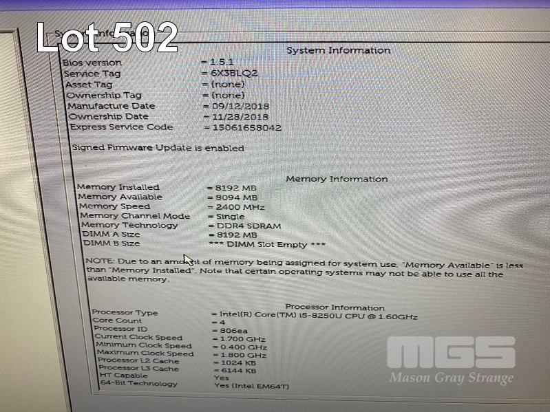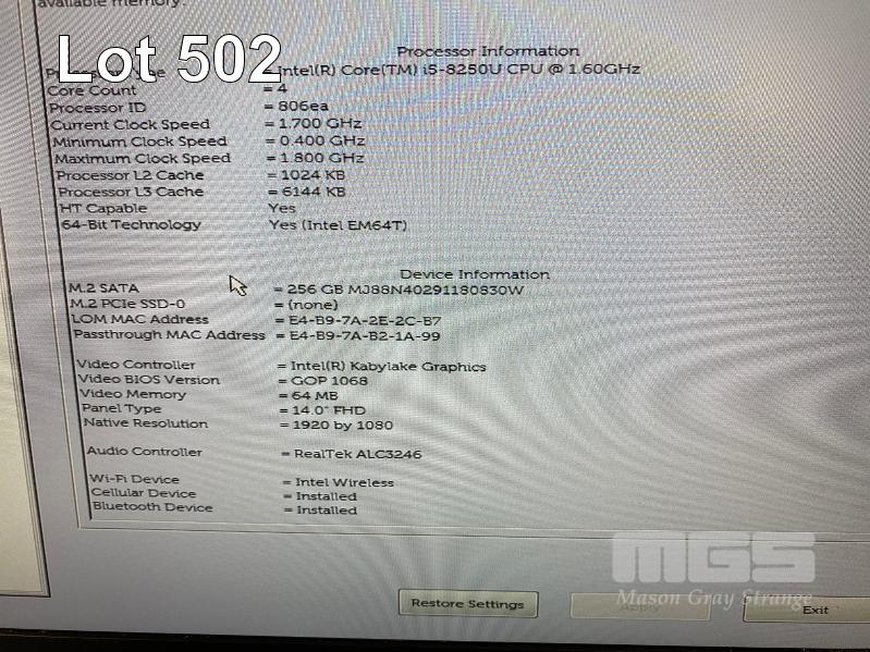 LAPTOP, DELL LATITUDE 7490, CORE i5 8250U (8TH GEN) @ 1.6GHz, 8GB DDR4 RAM, 256GB M.2 SSD, 14" WIDESCREEN (1920x1080), INTEL KABYLAKE GRAPHICS, CELLULAR, Wi-Fi, BLUETOOTH, WINDOWS 10 PRO INSTALLED & POWER SUPPLY (NOTE: NO BATTERY) S/N:6X3BLQ2
