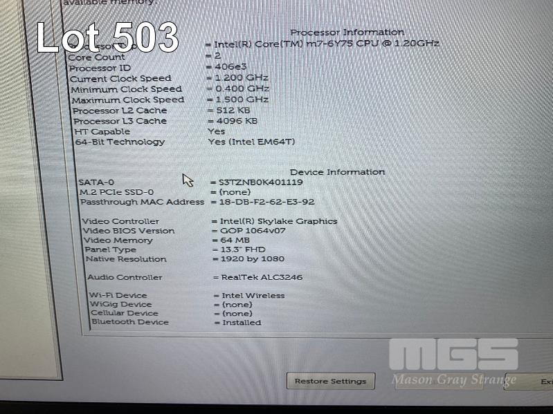 LAPTOP, DELL LATITUDE E7370, CORE m7-6Y75 @ 1.2GHz, 16GB DDR3 RAM, 512GB M.2 SSD, 13.3" WIDESCREEN (1920x1080), INTEL SKYLAKE GRAPHICS, Wi-Fi, BLUETOOTH, WINDOWS 10 PRO INSTALLED & USB-C POWER SUPPLY S/N:G6RNMF2
