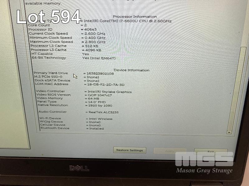 LAPTOP, DELL LATITUDE E7470, CORE i7 6600U (6TH GEN) @ 2.6GHz, 16GB DDR4 RAM, 256GB M.2 SSD, 14" WIDESCREEN (1920x1080), INTEL SKYLAKE GRAPHICS, Wi-Fi, BLUETOOTH, WINDOWS 10 HOME INSTALLED & POWER SUPPLY (NOTE: SWOLLEN BATTERY, SCRATCHES ON SCREEN) S/N:GCF7CG2