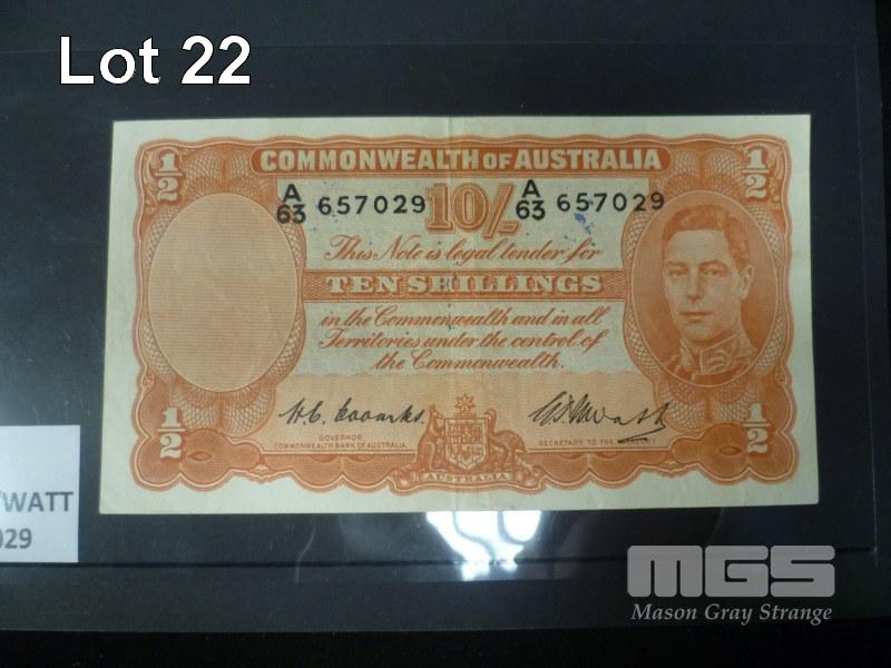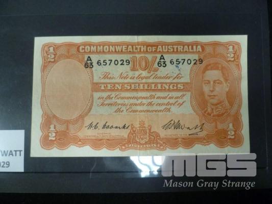 1949, COMMONWEALTH OF AUSTRALIA, TEN SHILLINGS BANKNOTE, COOMBS/WATT, A63 657029
