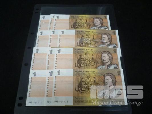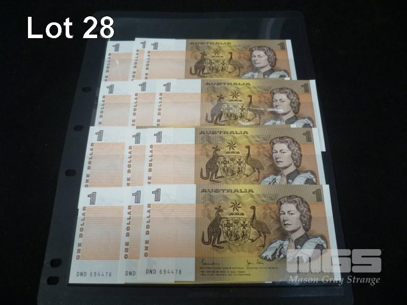 12 X 1982, AUSTRALIA, CONSECUTIVE, $1 PAPER BANKNOTES, JOHNSTONE/STONE, DND 694467-478, UNC