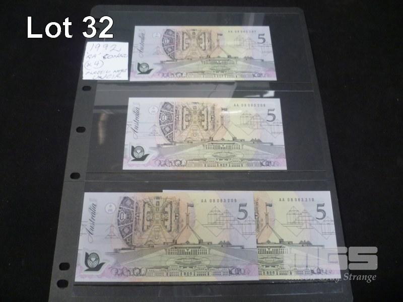 5 X COMMONWEALTH OF AUSTRALIA, $5 PAPER BANKNOTES, INC; 4 X 1967, COOMBS RANDALL, 1 X 1969 PHILLIPS/RANDALL