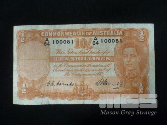 COMMONWEALTH OF AUSTRALIA, 10 SHILLING BANKNOTE, COOMBS/WATTS, A64 100081