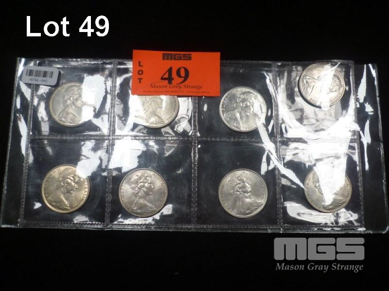 8 X AUSTRALIA, 1966, ROUND 50c COINS, UNC/aUNC