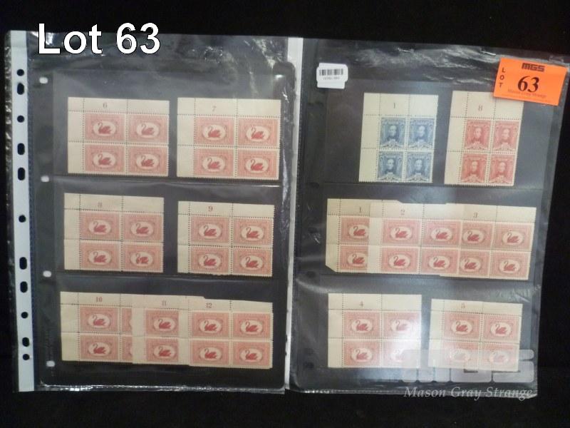 2 X SHEETS NUMBERED CORNER BLOCKS, PRE-DEC, AUSTRALIA STAMPS