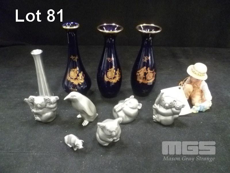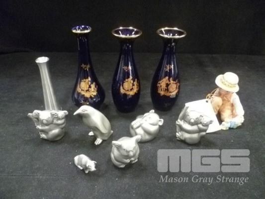 FIGURINES AND SMALL COLLECTIBLES INCLUDING ROYAL SELANGOR PEWTER FIGURINE ANIMALS AND ROYAL SELANGOR & LIMOGES MINIATURES ETC