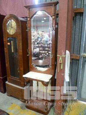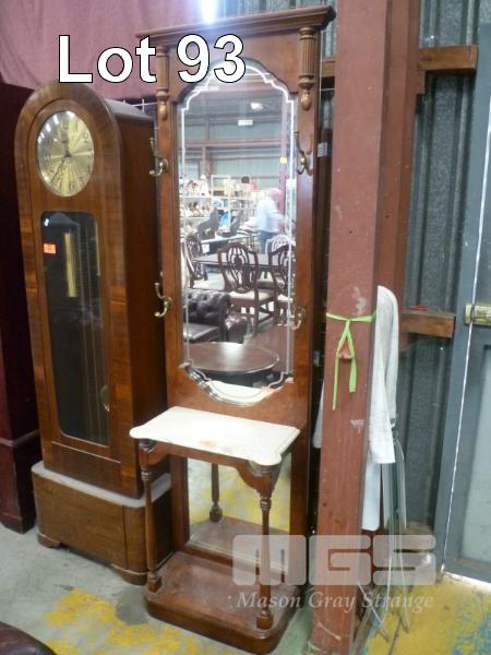 BLACKWOOD HALL STAND, MARBLE TOP, BRASS HOOKS, ETCHED MIRROR