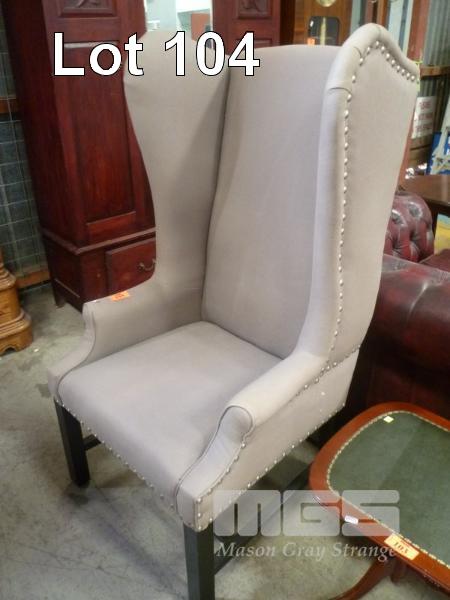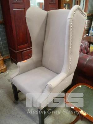 GREY FABRIC HIGH BACK CHAIR, WINGBACK