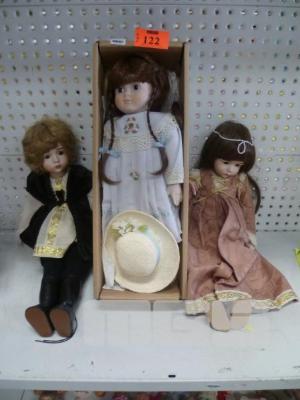 3 x PORCELAIN DOLLS, YOUNG GIRLS, 42cm (H)