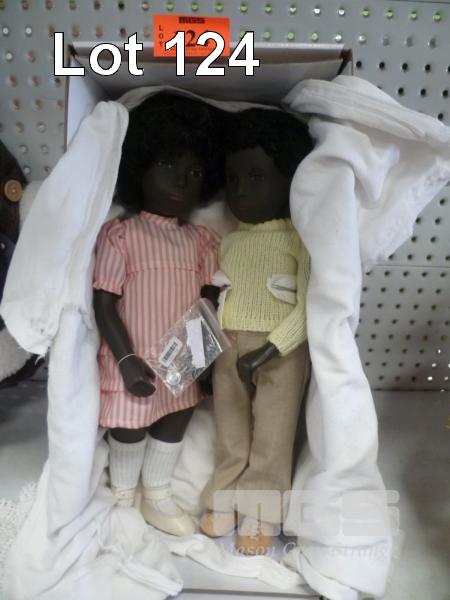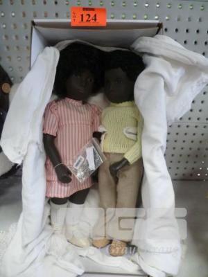 YOUNG GIRL & YOUNG BOY PLASTIC DOLLS, 40cm (H)