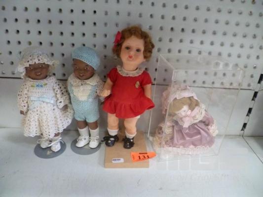 4 x PLASTIC DOLLS, PLASTIC DOLLS ON STANDS & PORCELAIN DOLL IN PLASTIC DISPLAY BOX, 25-30cm (H)
