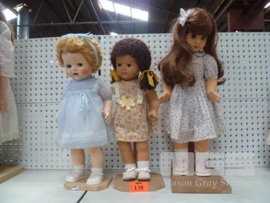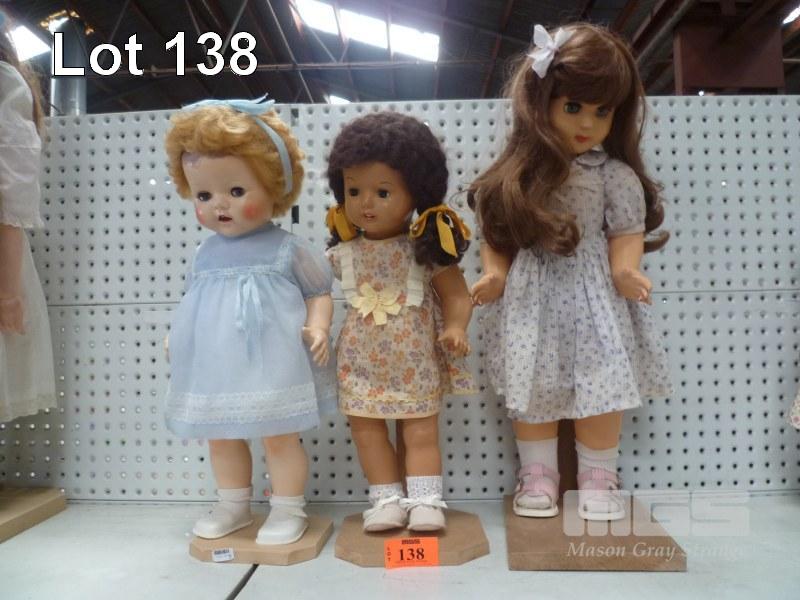 3 x PLASTIC DOLLS, YOUNG GIRLS ON STANDS, 52-60cm (H)