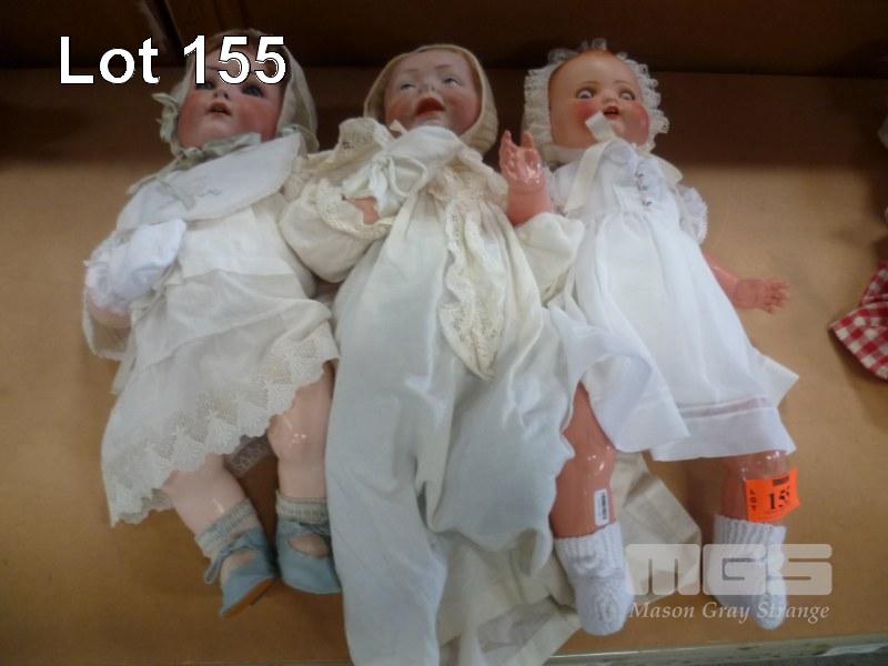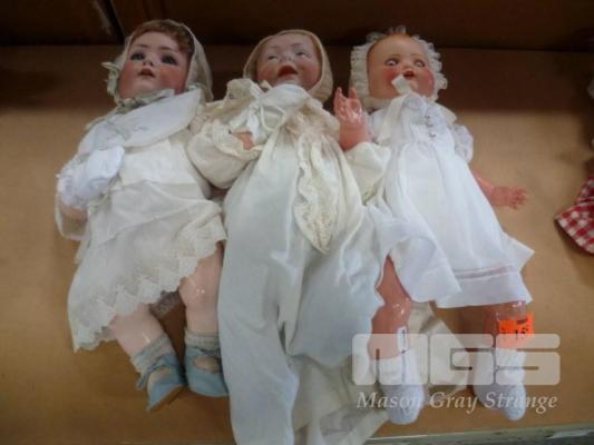 3 x PORCELAIN BABY DOLLS IN WHITE OUTFITS