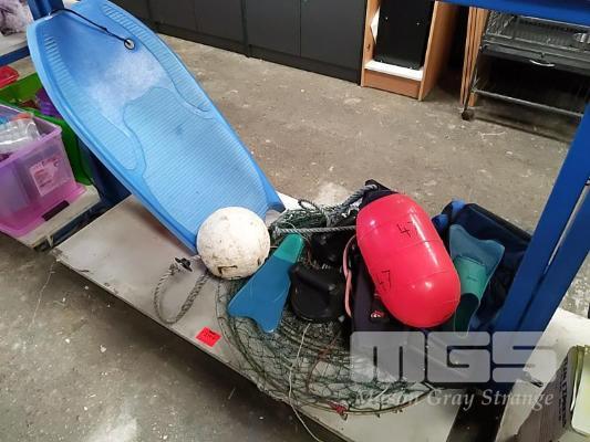 BOOGIE BOARD, CRAB/YABBY NETS, FISHING RODS, BAGS, EXERCISE EQUIPMENT, ETC