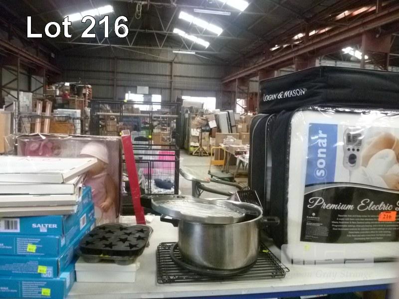 ELECTRIC BLANKETS, GLASS ELECTRONIC SCALES, COOKWARE, BABY-BORN DOLL SET ETC (1 X SHELF)