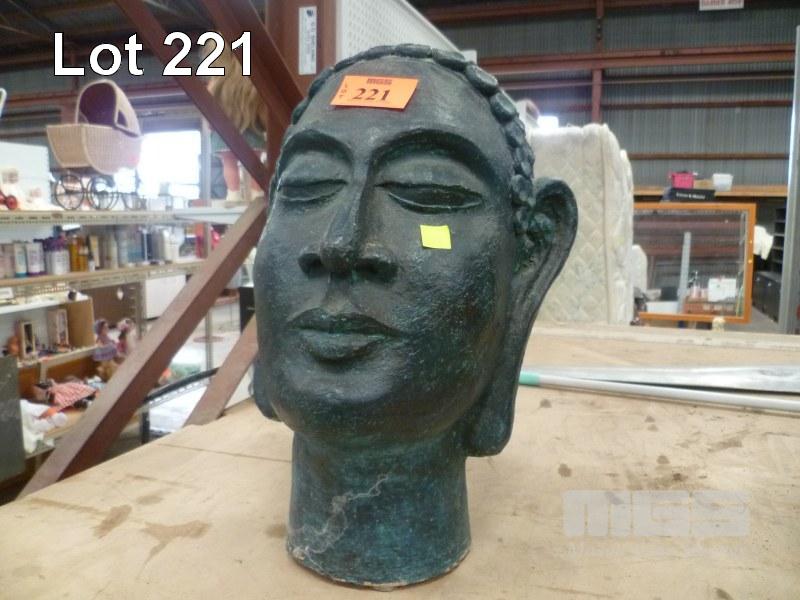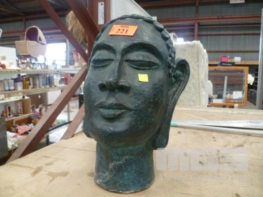 LARGE ORNAMENTAL HEAD IN PAINTED CLAY