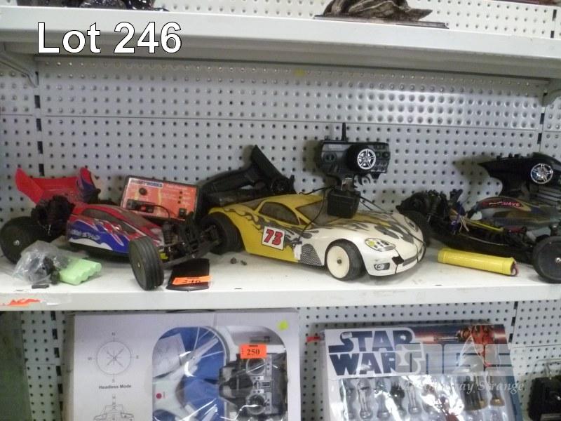 3 x ELECTRIC R/C VEHICLES WITH REMOTES, ALL FAULTS