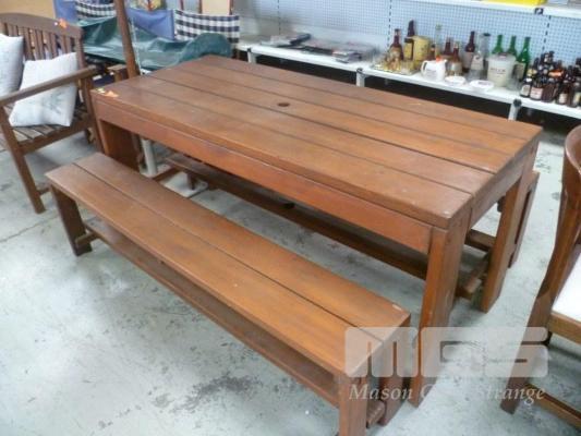PINE 3 PIECE OUTDOOR SETTING, RECTANGULAR TABLE & 2 x BENCH SEATS