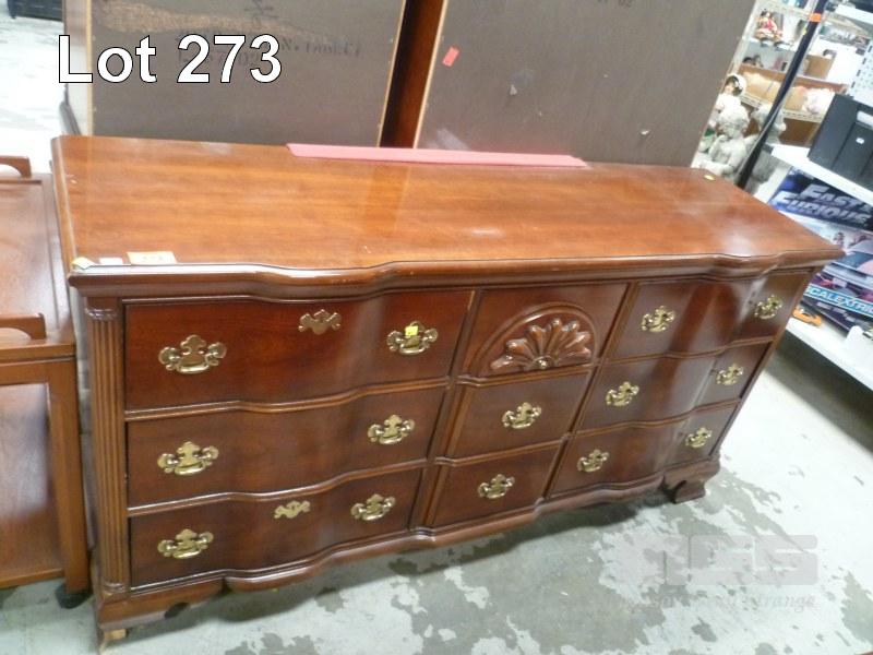 MAHOGANY SIDEBOARD, WAVE FRONT 9 DRAWERS, BRASS FITTINGS, 167cm