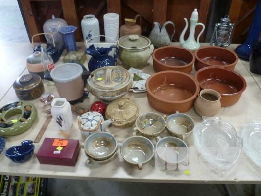 ASSORTED VASES, BOWLS, COOKING POTS, ETC. (1 x TABLE)