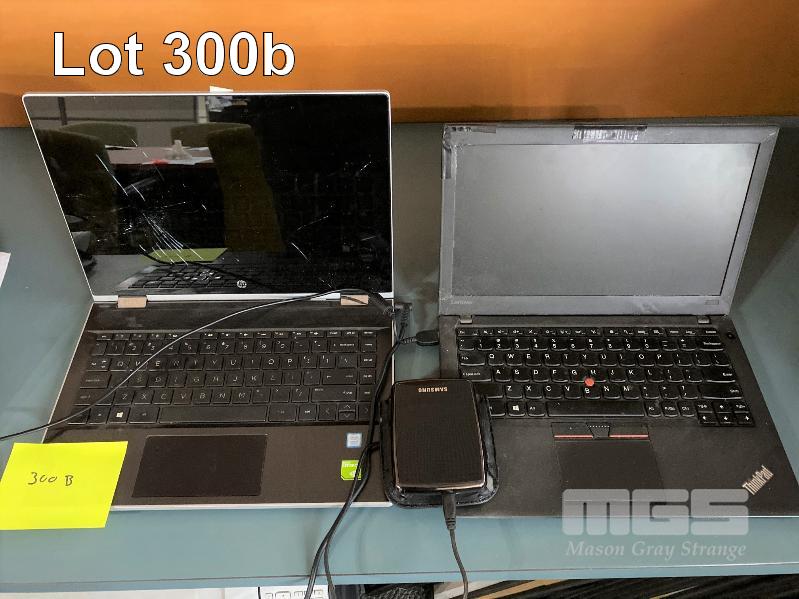 2 x LAPTOPS, LENOVO THINKPAD X260 (DAMAGED), CORE i5 6200U @ 2.3GHz, 8GB RAM, 256GB SDD & POWER SUPPLY HP PAVILION x360 (DAMAGED), CORE i5 8250U @ 1.6GHz, 8GB RAM, 128GB SSD & POWER SUPPLY & 1 x SAMSUNG 640GB EXTERNAL USB HARD DRIVE