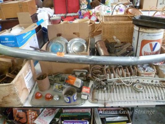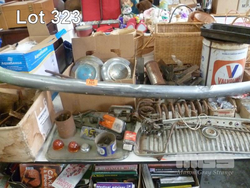 ASSORTED VINTAGE VEHICULAR PARTS, VALVOLINE PETROL TIN AND RAISED TOILET SEAT
