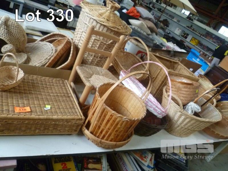 ASSORTED WICKER BASKETS & ITEMS (1 x TABLE)