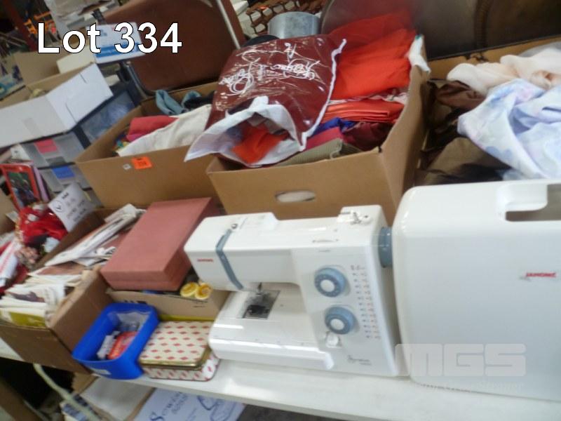 SEWING MACHINE, JANOME SEWIST 5253 NO PEDAL SEWING ACCESSORIES, SEWING PATTERNS, MATERIAL, ETC. (1 x TABLE)