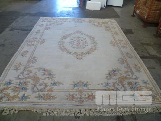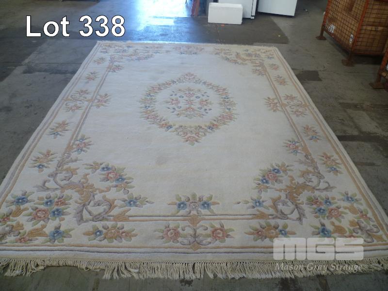 BEIGE FLORAL DESIGN WOOL FLOOR RUG, 340 x 250cm