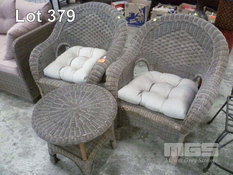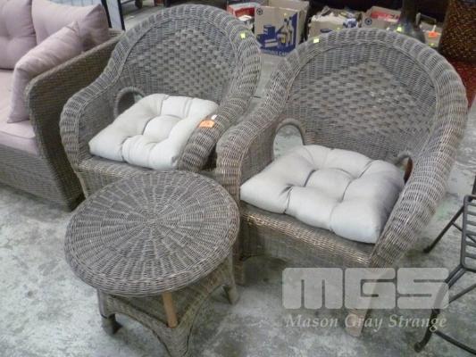 WICKER 3 PIECE PATIO SETTING, 2 x ARMCHAIRS & ROUND TABLE