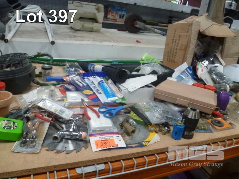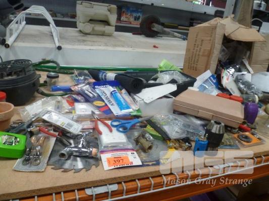 ASSORTED HARDWARE, SAW BLADES, BICYCLE HELMETS ETC