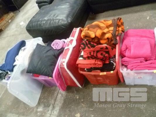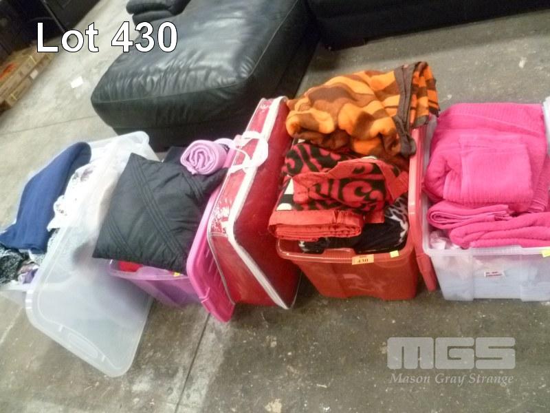 ASSORTED BEDDING & TOWELS, 4 X TUBS