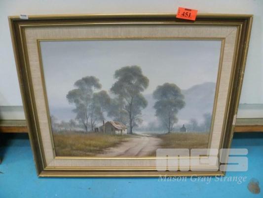 OIL LANDSCAPE WITH COTTAGE BY DIRK VAN DOLDEREY, 44 x 60cm